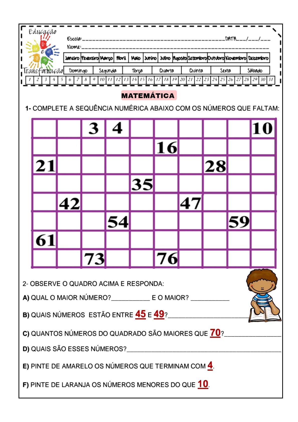Atividade De Matematica Sequencia Numerica - NAZAEDU