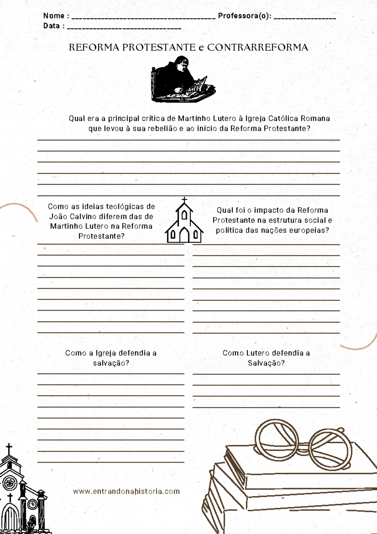 Esta atividade aborda a Reforma Protestante, iniciada por Martinho Lutero no século XVI, e a subsequente Contrarreforma Católica.