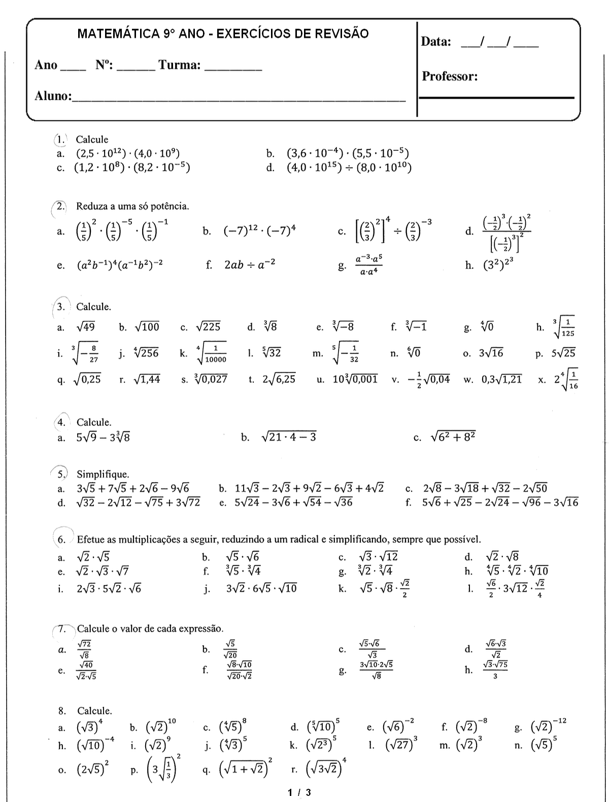 Atividades De Matemática 9 Ano Com Gabarito - EDUCA