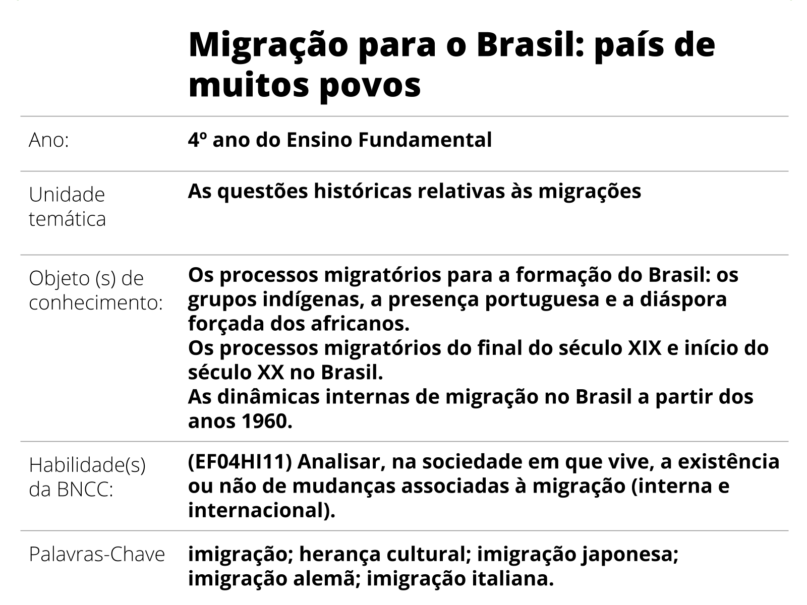 A temática da imigração é rica em história, cultura e empatia, sendo ideal para ser explorada em sala de aula com alunos do 4º ano. Trabalhar com esse assunto em sala de aula não apenas expande o conhecimento sobre o Brasil como um país multicultural, mas também promove a reflexão sobre valores como respeito, tolerância e acolhimento.