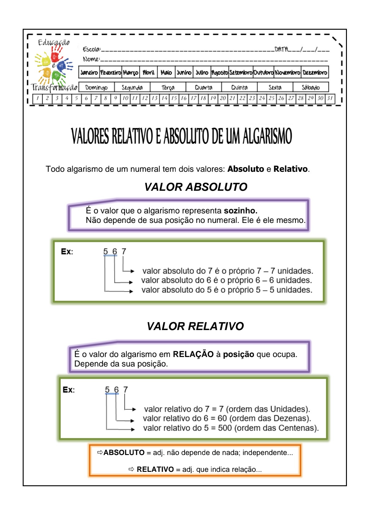 Atividades Valor Absoluto E Relativo 4o Ano Com Gabarito