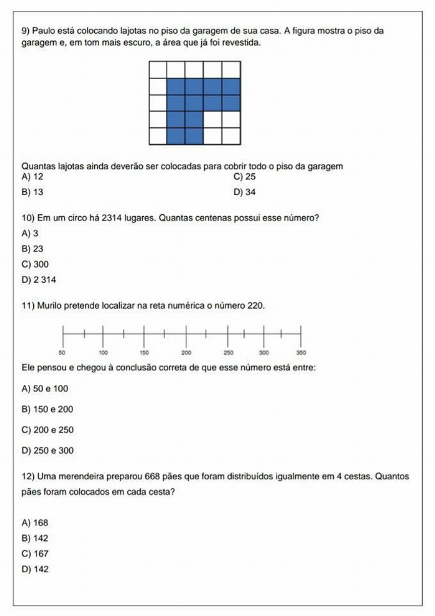 • **Números e operações:** Compreensão de números naturais, decimais, frações e percentuais. Domínio das operações matemáticas básicas (adição, subtração, multiplicação e divisão).Решение de problemas que envolvam operações matemáticas.