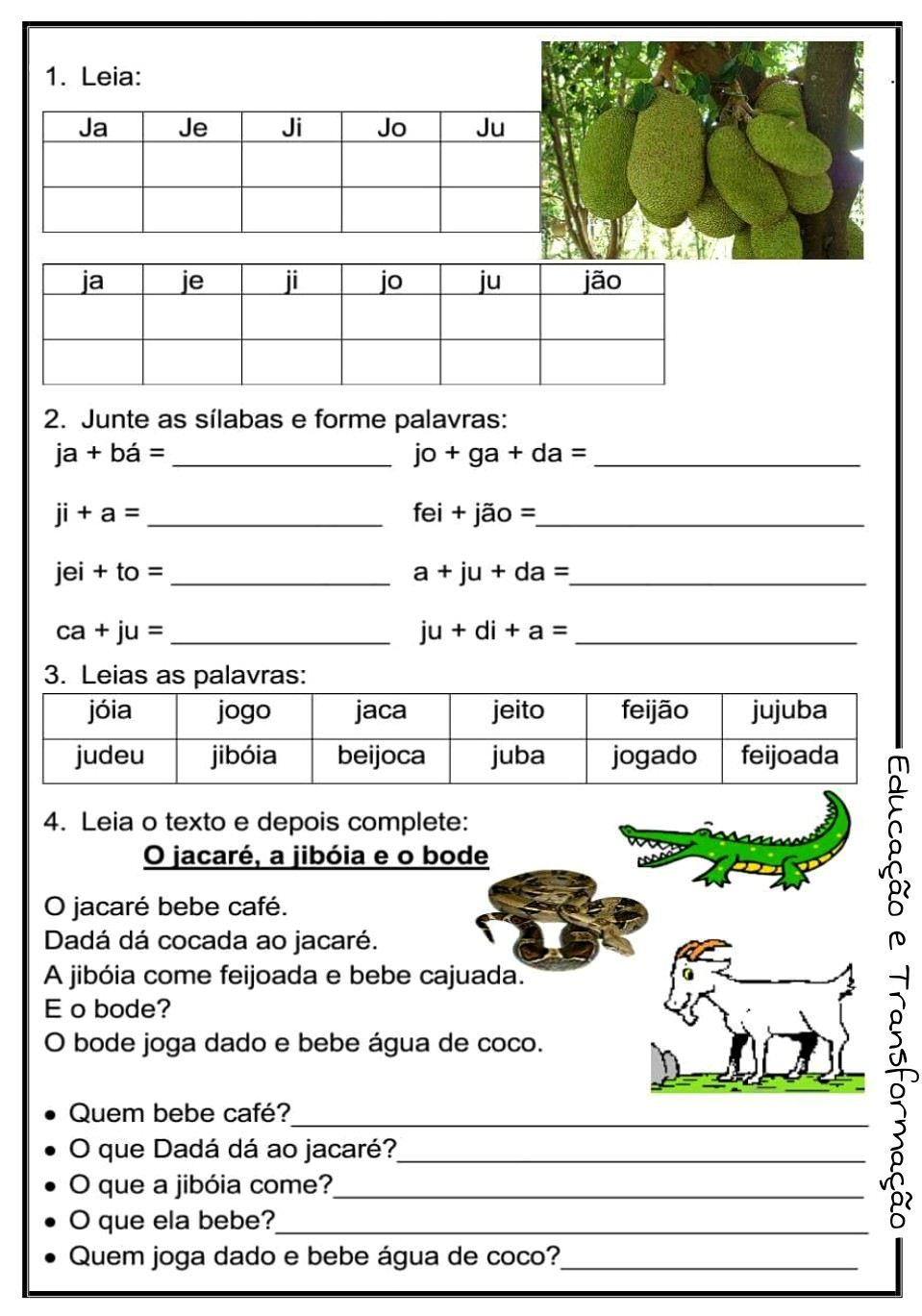 Reforço Escolar Atividades 3 Ano Fundamental Português