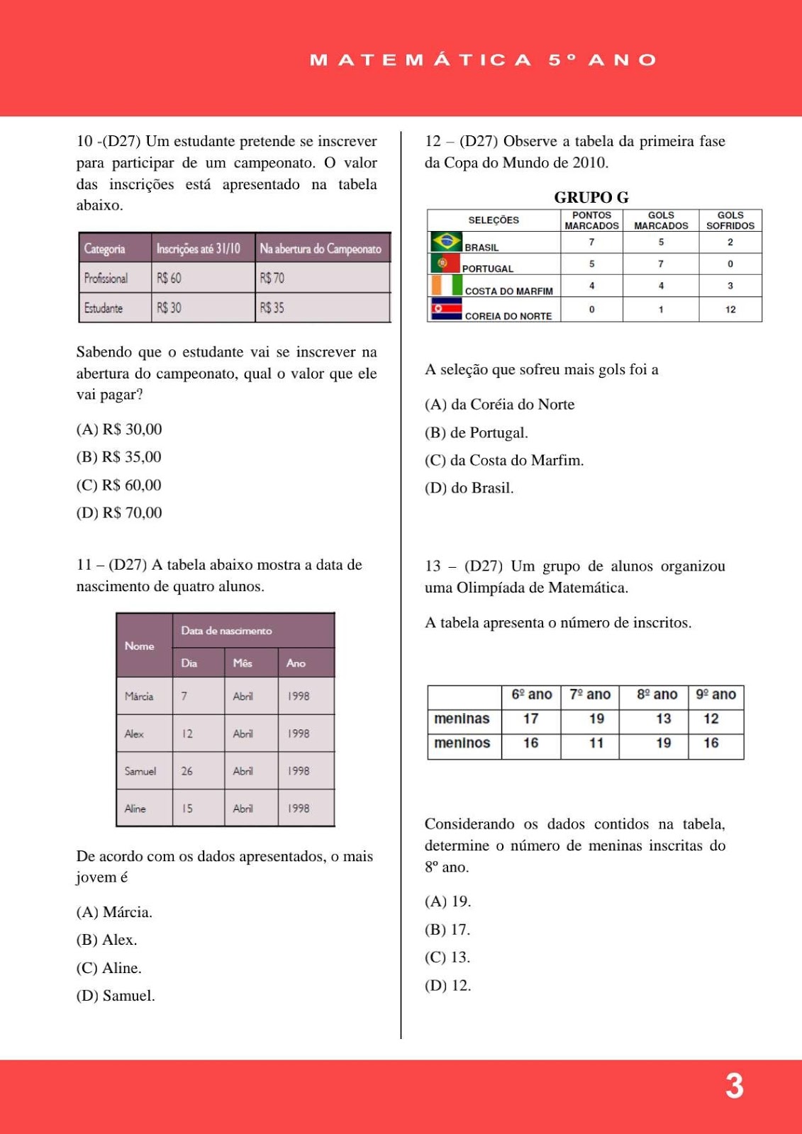 Simulado De Matemática 5 Ano Com Descritores E Gabarito - FDPLEARN