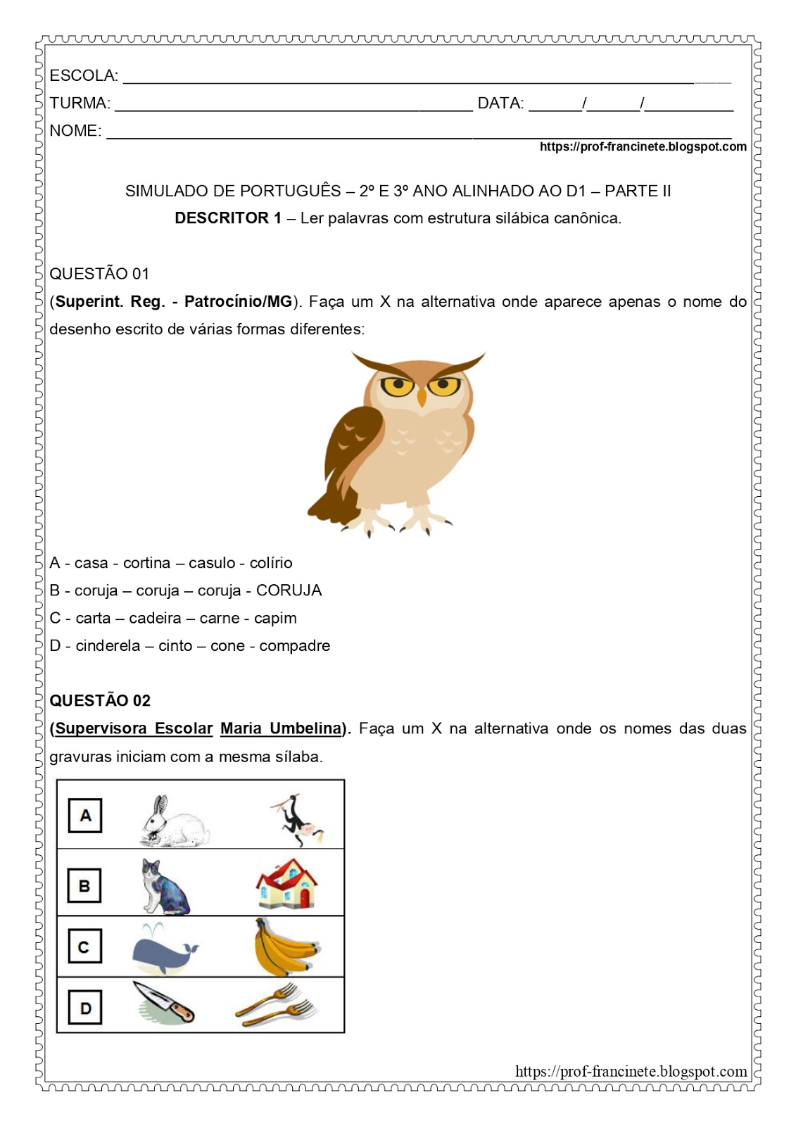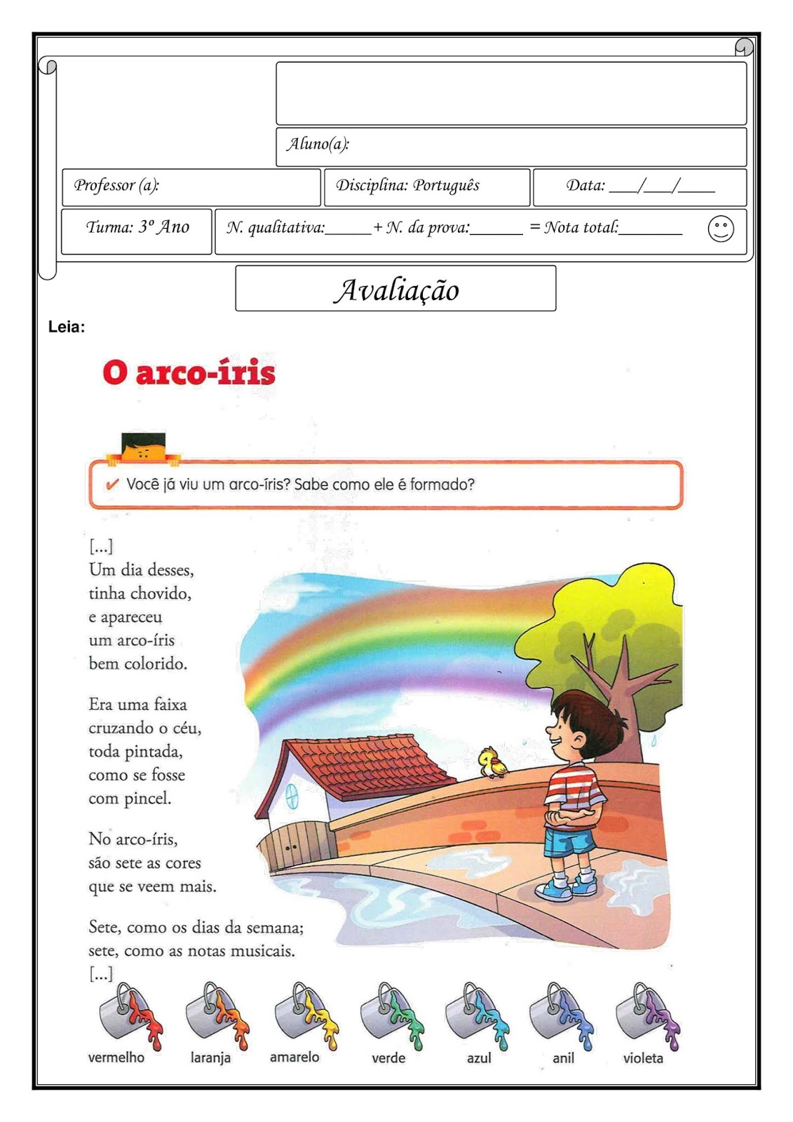 Simulado De Português 3 Ano Para Imprimir Com Gabarito